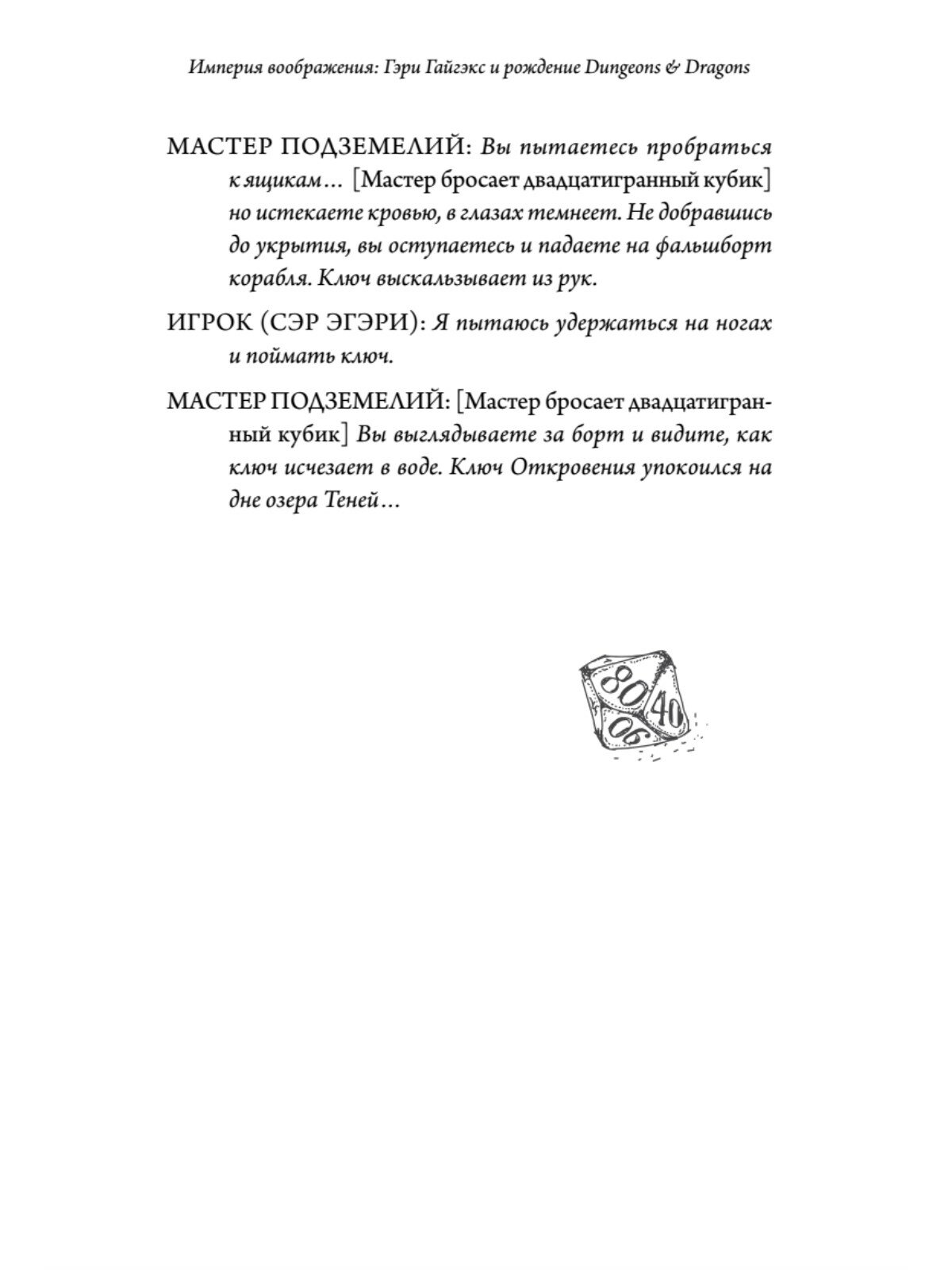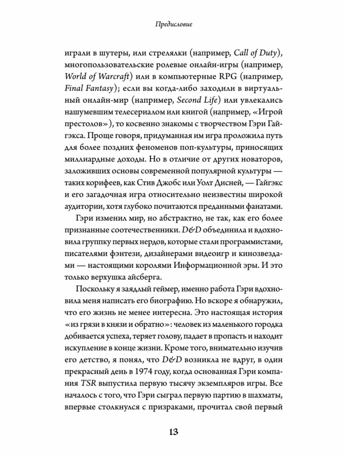 Захватывающая история жизни Гэри Гайгэкса — создателя культовой ролевой игры.Жизнь Гэри Гайгэкса была столь же запоминающейся, как и любое путешествие по подземельям. Придумав самую известную и продаваемую ролевую игру всех времен Dungeons & Dragons, он совершил настоящую революцию в индустрии. Гайгэкс повлиял не только на развитие жанра, но и на два поколения авторов, программистов и гейм-дизайнеров, открыв им инструменты для создания персонажей и целых миров в своем воображении. Изучив интервью, архивные фото и документы, Майкл Уитвер смог описать историю жизни крестного отца всех фэнтезийных игр как увлекательное приключение. Книга перенесет вас в мастерскую гения, которому удалось подчинить воображение, и раскроет главный секрет его успеха — это непоколебимая вера в силу творчества и невероятная преданность своему делу, несмотря на все трудности.