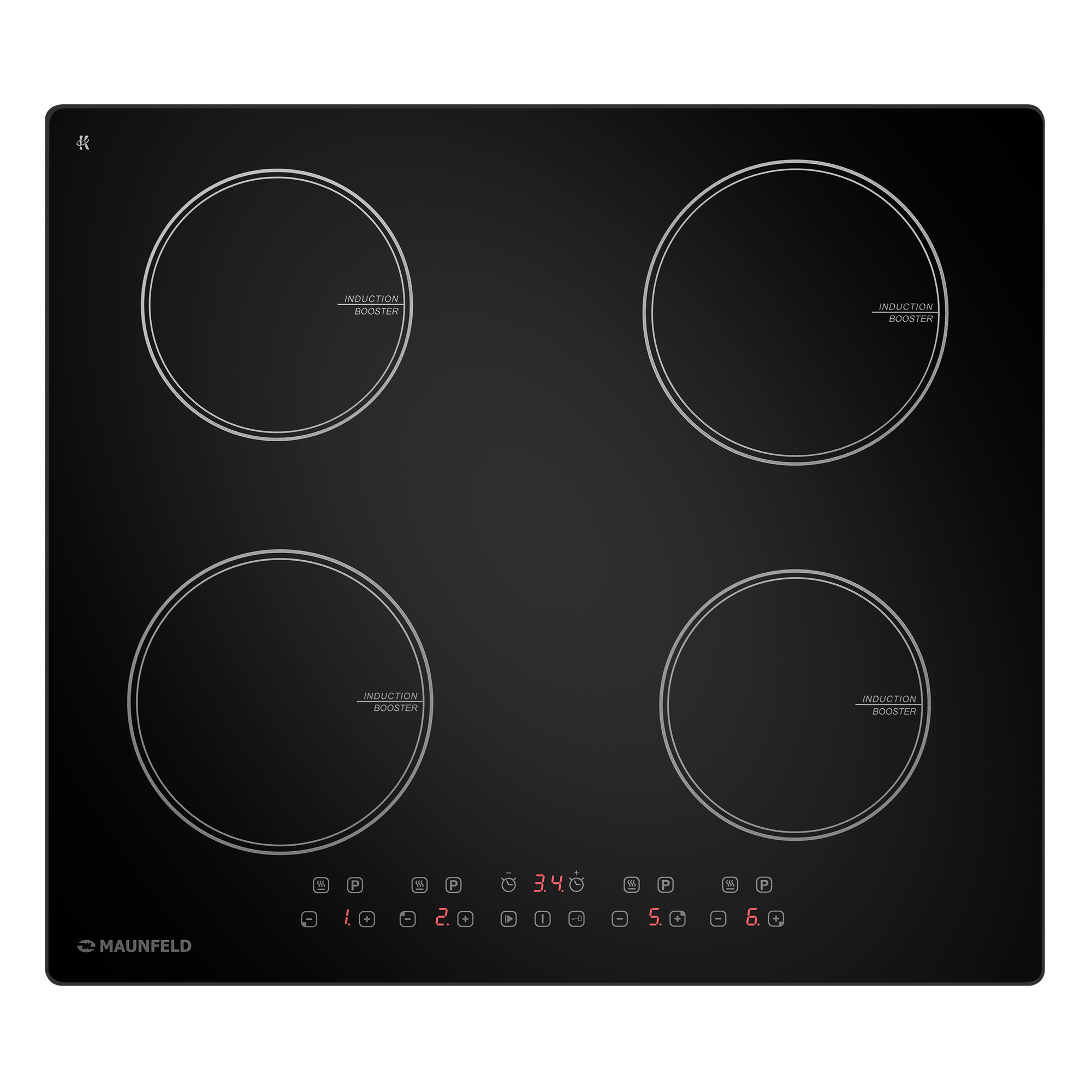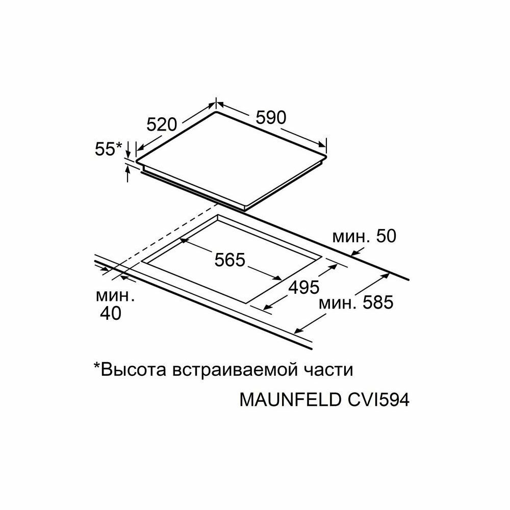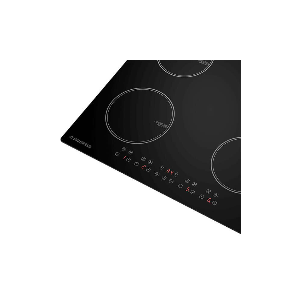 Встраиваемая индукционная варочная панель с функцией BOOSTER - MAUNFELD . Ширина панели 59 см, глубина 52 см, высота - 6 см. Функция BOOSTER обеспечивает максимальную мощность нагрева именно тогда, когда это необходимо и является идеальным решением для тех случаев, когда требуется быстрое достижение высокой температуры. Индикатор наличия посуды показывает, что посуда отсутствует на конфорке или не подходит по диаметру для использования (диаметр не менее 10 см ). С Помощью сенсорное управление можно регулировать уровень мощности с помощью слайдера (9 уровней), включить функцию «Бустер» (максимальная мощность), выставить таймер или заблокировать панель от детей. Функция «Stop+Go» позволяет сделать паузу в приготовлении одним нажатием кнопки – и возобновить работу с теми же настройками. Защитное автоотключение обеспечивает самостоятельное отключение конфорки в случае перегрева или попадания воды, это гарантирует высокую степень безопасности для вас и вашего дома.