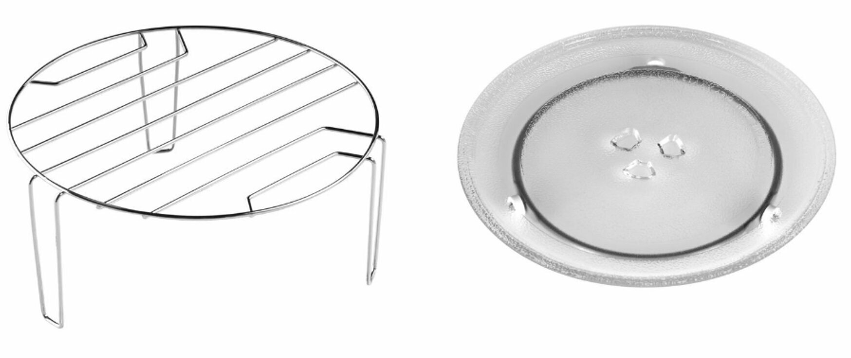 \r\nВ комплекте идет большая тарелка для поворотного стола диаметром 255 мм и решетка для гриля. Есть опция логичного выбора настроек и звуковой сигнал об окончании работы, который легко отключить.