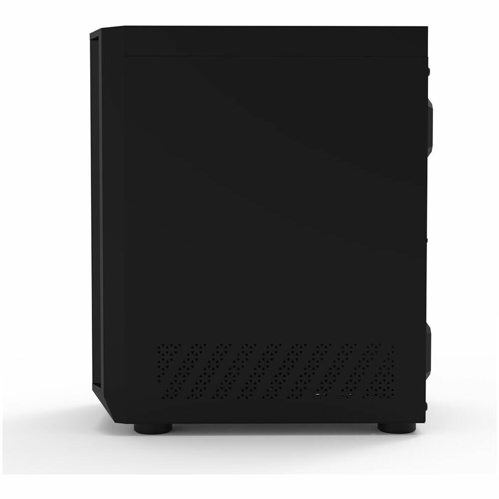 Встроенный вертикальный слот для установки GPU, а также нижнее боковое вентиляционное отверстие из армированного стекла для эффективного забора внешнего воздуха при вертикальной установке способствуют более плавной циркуляции воздушного потока.