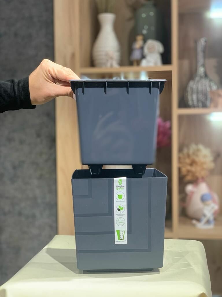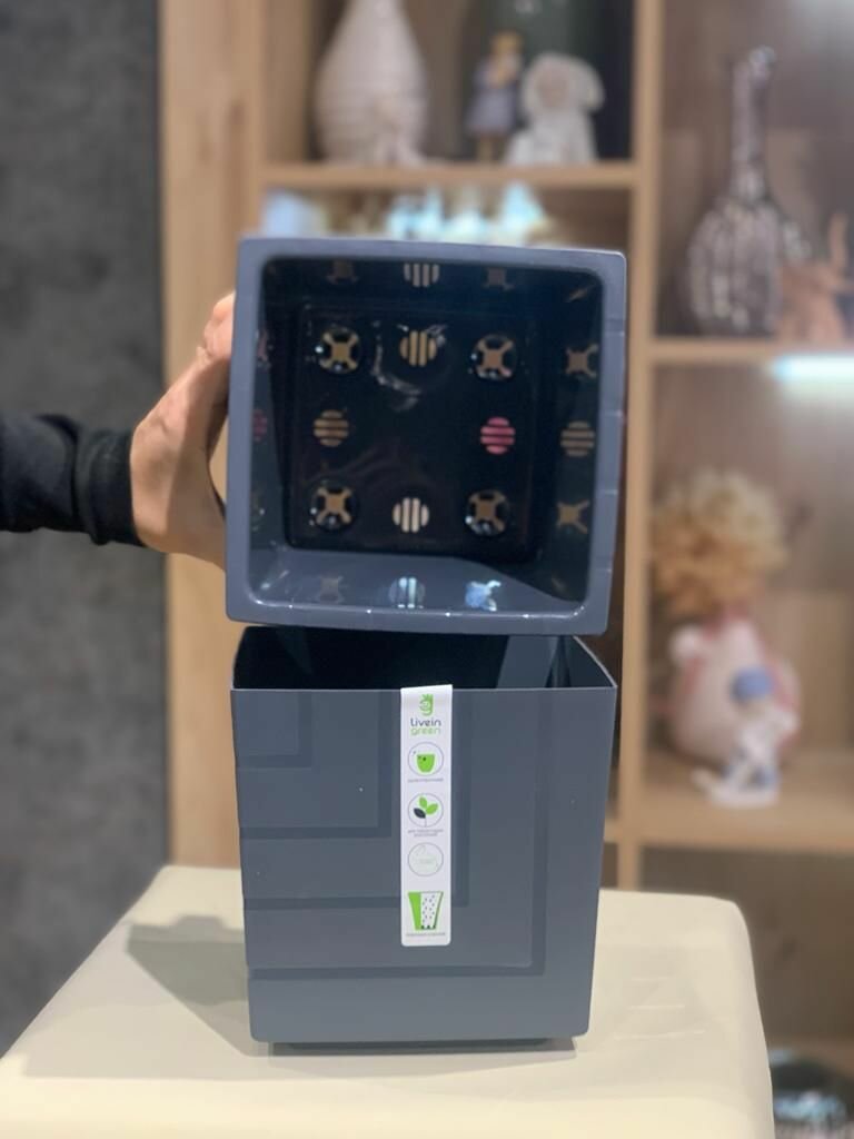 Горшок Ливингрин КВ 12-12 Квадро с вкладкой d.115 антрацит