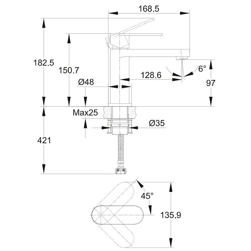| Длина излива | 129 мм |