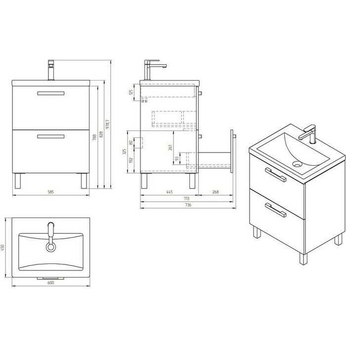 - Размеры (ШхВхГ): 585х828х445 мм.