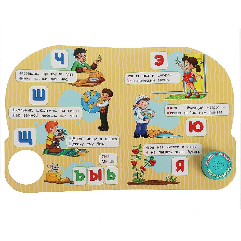 Музыкальная книга. 1 звуковая кнопка, 3 песенки. С. Я. Маршак. Азбука, ТМ «УМка»: