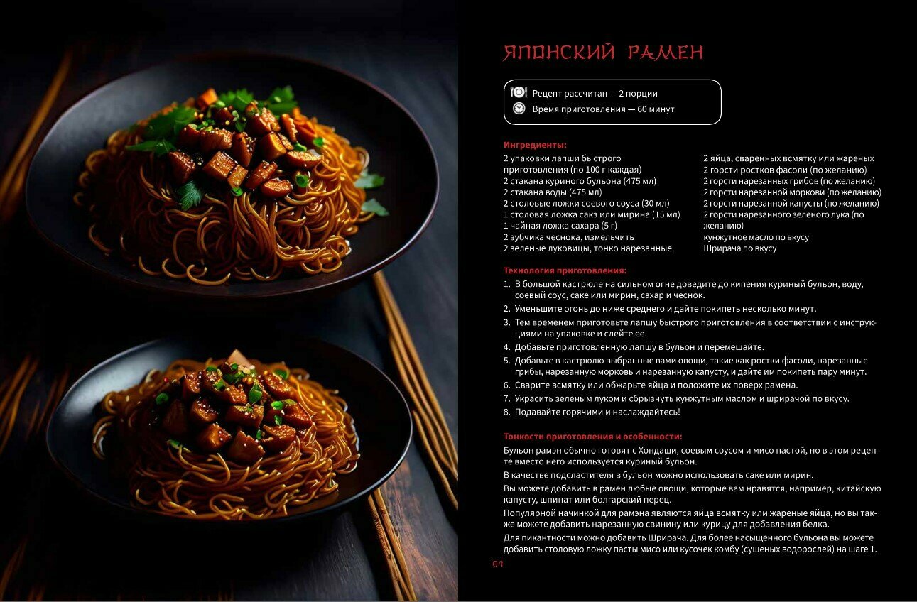 Помимо основных ингредиентов и пошаговой технологии, автор делится особыми фишками и тонкостями приготовления, которые помогут вам в процессе. Красочные и сочные иллюстрации дополняют рецепты, которые пропитаны атмосферой азиатской кухни, и доказывают, что готовка в наше время уже отдельным видом искусства.