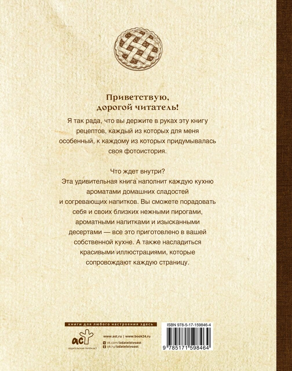 Окунитесь в атмосферу уюта и домашней кухни с этой удивительной книгой: фирменные рецепты с красочными иллюстрациями порадуют вас не только нежными пирогами, ароматными напитками и изысканными десертами – на страницах вы найдете рецепты ароматных рагу, вкусных салатов, и много чего интересного, что может стать угощением для ваших близких и друзей.