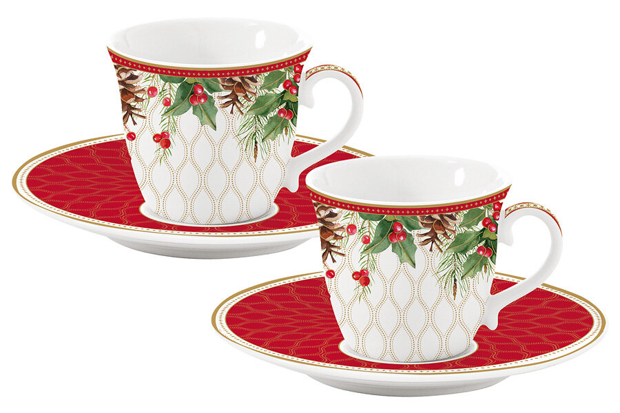 Набор чашек с блюдцами Рождественские ягоды 008 л 2 шт Easy life