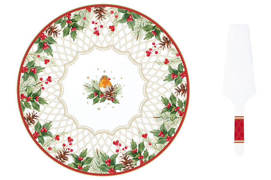 Блюдо для торта Easy life Рождественские ягоды с лопаткой 32 см
