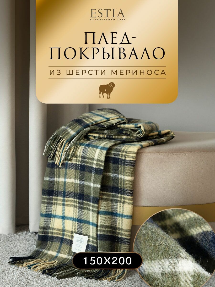 Плед Estia 150х200 см на диван кровать овечьея шерсти 350 гр/м2