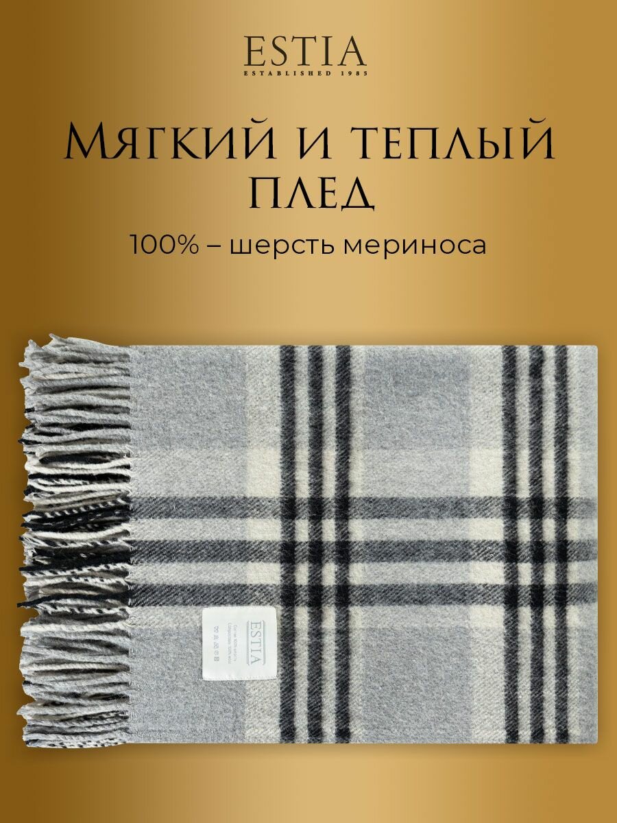 Плед Estia 150х200 см на диван кровать овечьея шерсти 350 гр/м2