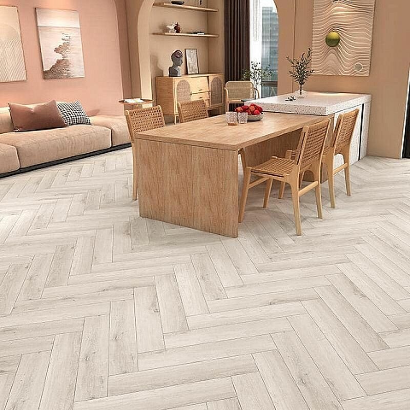 Ламинат надежен и удобен в эксплуатации, можно укладывать на больших площадях без разрывов. Сверху декоративный принт и два защитных слоя толщиной 0,3 мм.. Напольное покрытие SPC поглощает звуки: стук каблуков, цокот когтей собаки, шум от падения предметов.