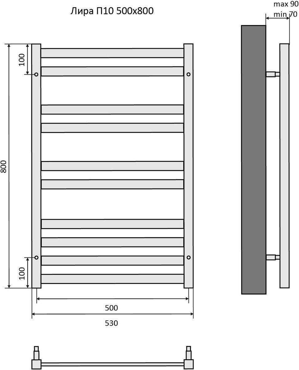 Полотенцесушитель водяной Aquatek (Акватек) Лира П10 500х800 мм, подключение нижнее/диагональное, сверхпрочная пищевая нержавеющая сталь AISI 304L, гарантия 10 лет