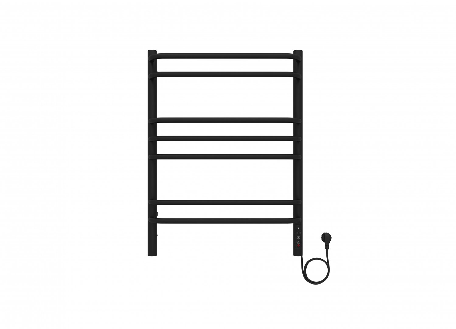 Полотенцесушитель электрический Aquatek (Акватек) Пандора П7 500х700 мм, черный муар, подключение скрытое к сети электропитания / электропровод с вилкой, с терморегулятором и таймером quick touch, нержавеющая сталь AISI 201, гарантия 5 лет