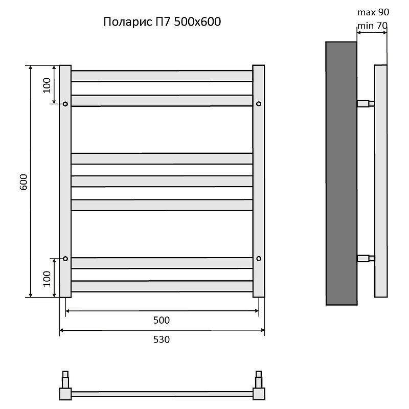 Полотенцесушитель водяной Aquatek (Акватек) Поларис П7 500х600 мм, черный муар, подключение нижнее/диагональное, сверхпрочная пищевая нержавеющая сталь AISI 304L, гарантия 10 лет