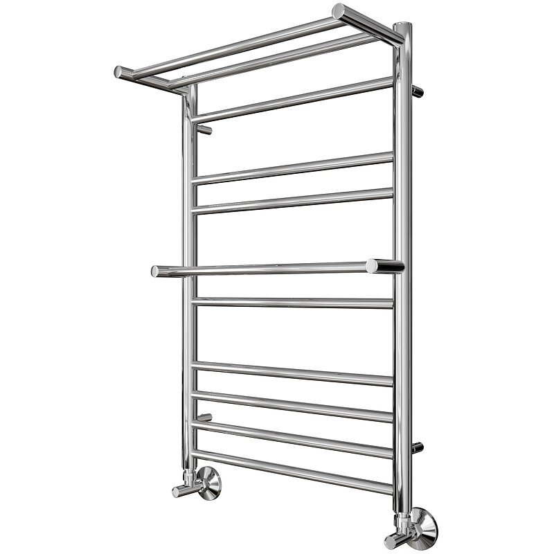 Полотенцесушитель водяной Aquatek (Акватек) Альфа П10 500х800 мм, с полкой, подключение нижнее/диагональное, сверхпрочная пищевая нержавеющая сталь AISI 304L, гарантия 10 лет