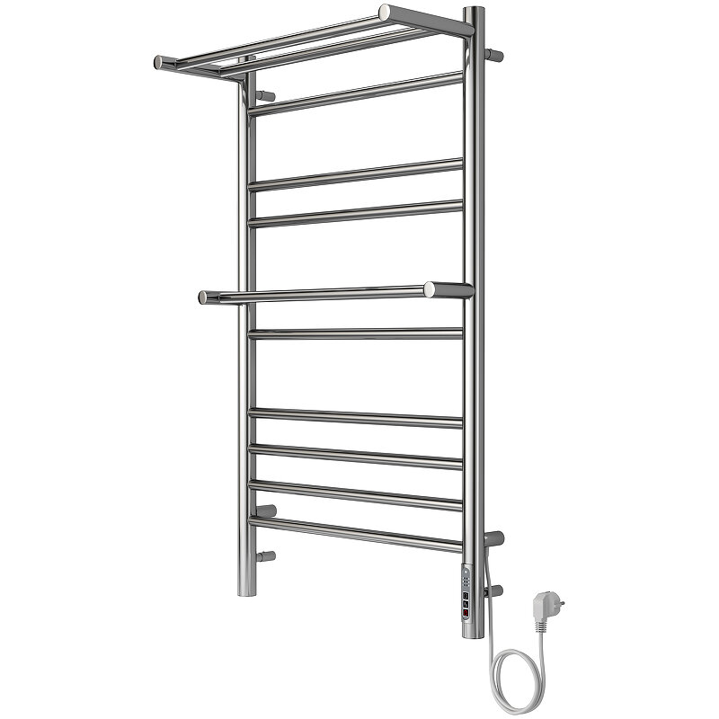Полотенцесушитель электрический Aquatek (Акватек) Альфа П10 500х900 мм, с полкой, подключение скрытое к сети электропитания / электропровод с вилкой, с терморегулятором и таймером quick touch, нержавеющая сталь AISI 201, гарантия 5 лет