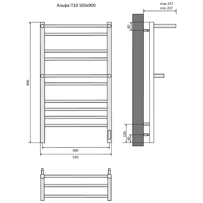 Модель: Полотенцесушитель электрический Акватек Альфа П10 AQ EL RRP1090CH 500х900 (quick touch)