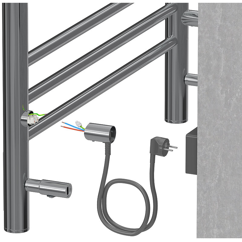 - Простота установки и полная комплектация, изделие готово к установке: все необходимое для монтажа уже в комплекте. Для монтажа не потребуется профессиональная помощь или использование сложных инструментов. Достаточно закрепить полотенцесушитель на стене в непосредственной близости от розетки. Габарит выступа от стены регулируется телескопическими крепежами
