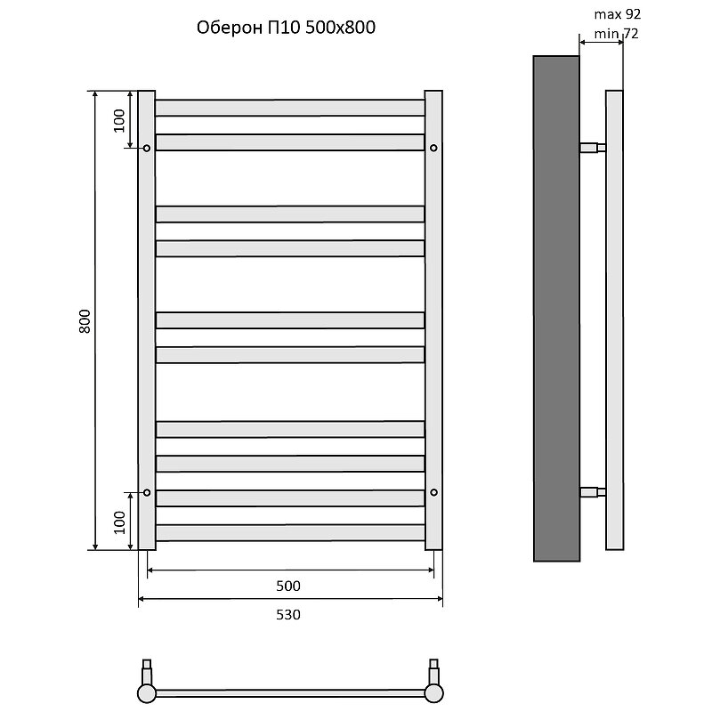 Модель: Полотенцесушитель водяной Акватек Оберон П10 AQ RO1080BL 500х800, черный муар