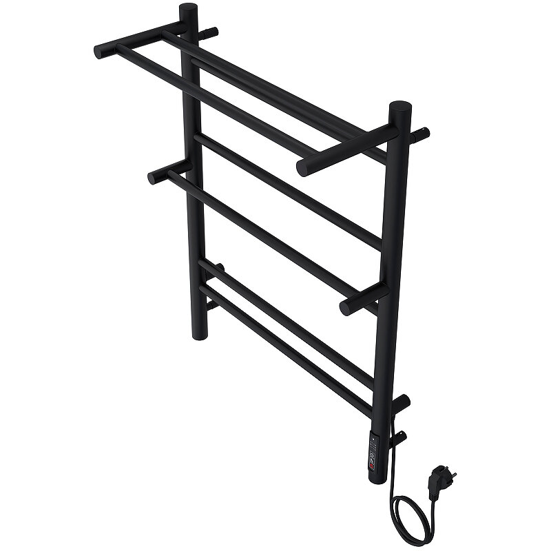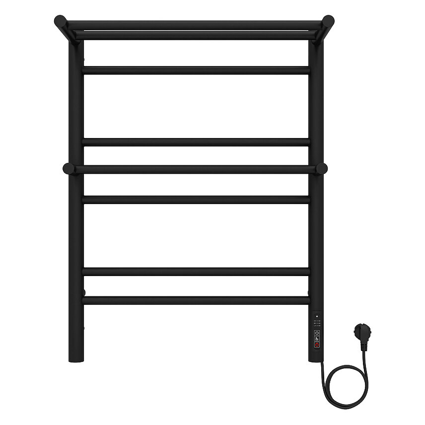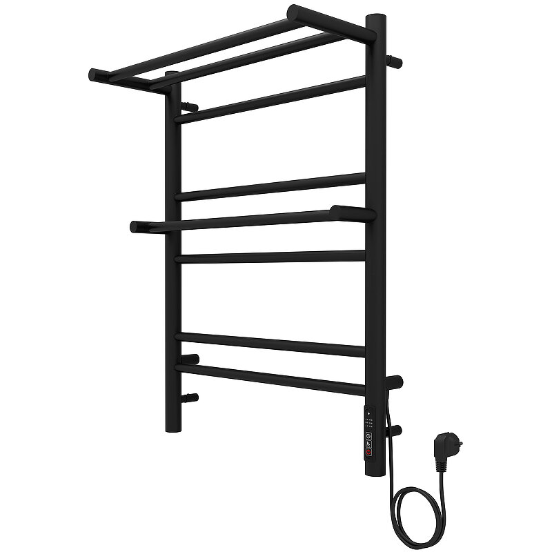 Полотенцесушитель электрический Aquatek (Акватек) Альфа П7 500х700 мм, с полкой, черный муар, подключение скрытое к сети электропитания / электропровод с вилкой, с терморегулятором и таймером quick touch, нержавеющая сталь AISI 201, гарантия 5 лет