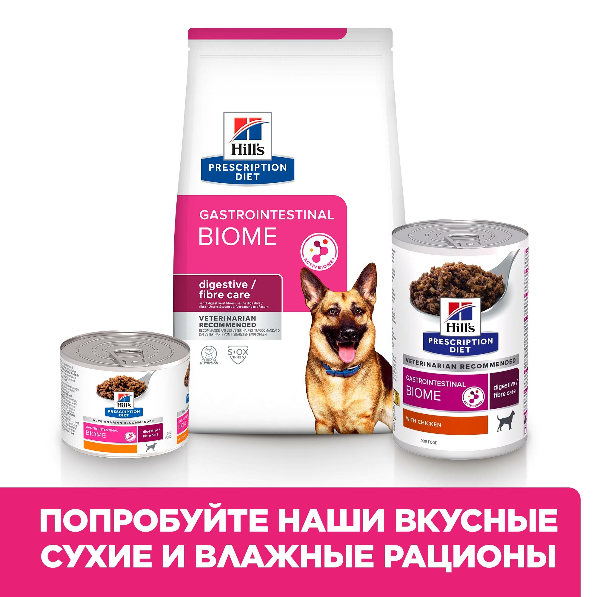 Диетологи и ветеринарные специалисты Hill`s разработали рацион Hill's Prescription Diet Gastrointestinal Biome с передовой технологией ингредиентов ActivBiome+, которая, клинически доказано, восстанавливает регулярный нормальный стул всего за 24 часа и снижает риск рецидива8.