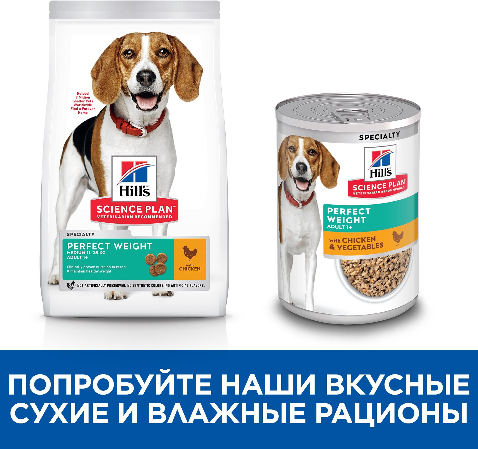 Hill's Science Plan Perfect Weight консервы для собак с лишним весом (Курица и овощи 363 г.)