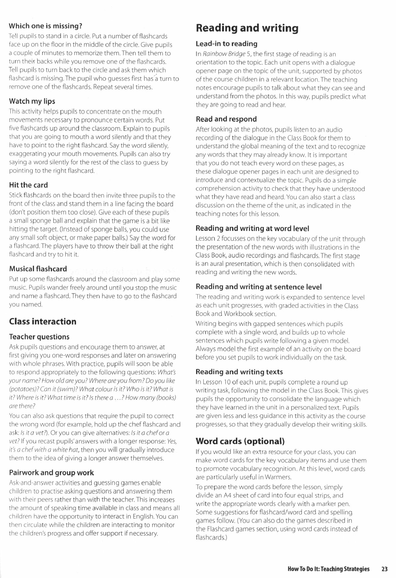 Teacher's Guide provides step-by-step guidance on all content in the Class Book, including an introductory description of methodology and concept behind the course.
