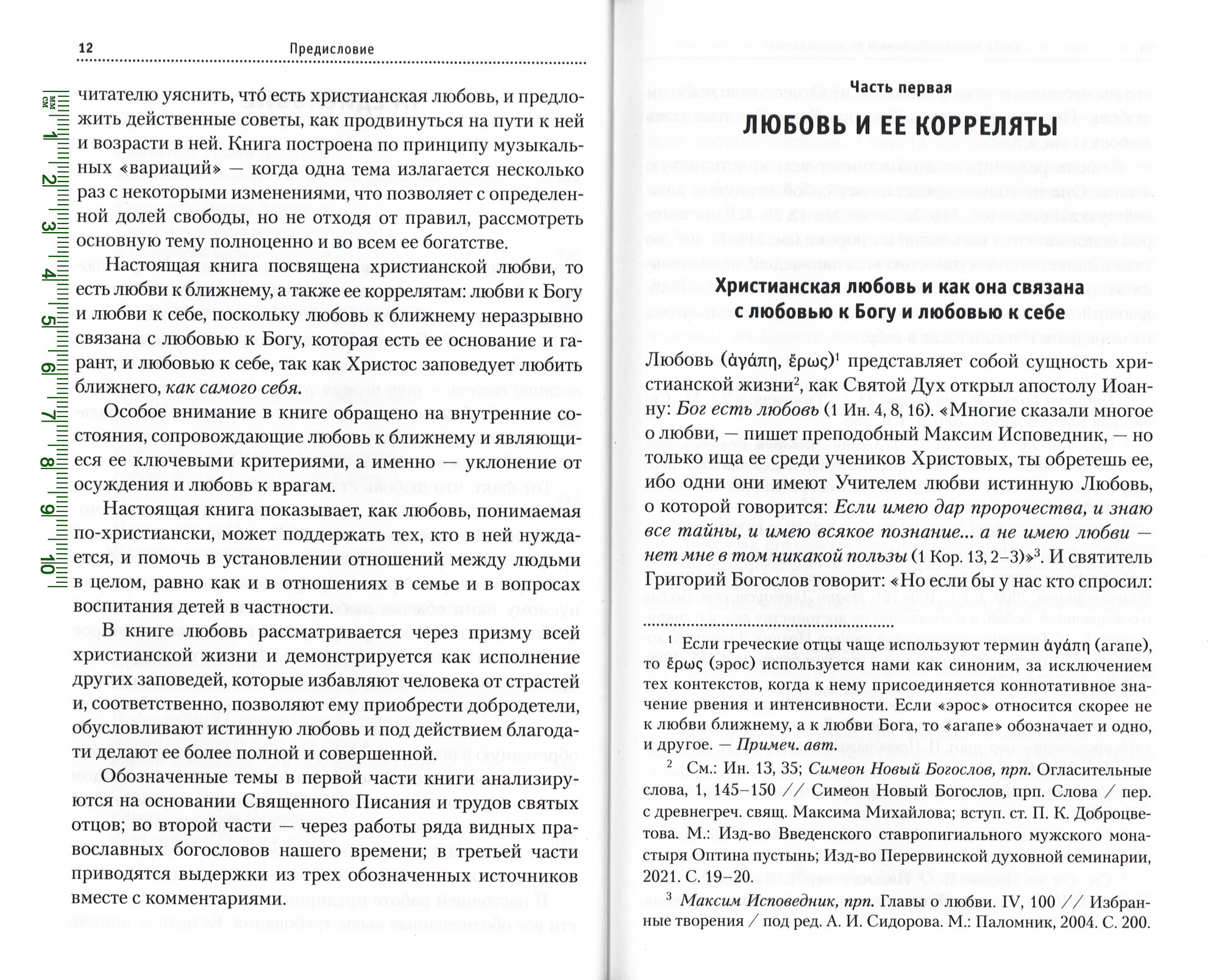 монументальный труд, посвященный высочайшей христианской добродетели. Одновременно это и руководство к стяжанию любви, и сборник, в который включены отрывки из многих святоотеческих произведений, касающихся заповеди о любви, в том числе и современныхнам святых. Каждому отзовется та или иная мысль святых подвижников, тот или иной их совет.