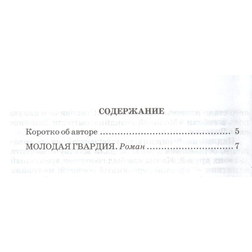 В книгу вошел первый вариант романа А. А. Фадеева "Молодая гвардия", изданный в 1946 году. В романе рассказывается о действовавшей во время Великой Отечественной войны молодежной подпольной организации "Молодая гвардия", о ее героической борьбе с немецкими захватчиками в оккупированном Краснодоне. Роман включен в перечень "100 книг по истории, культуре и литературе народов Российской Федерации, рекомендуемые школьникам к самостоятельному прочтению". Для старшего школьного возраста.