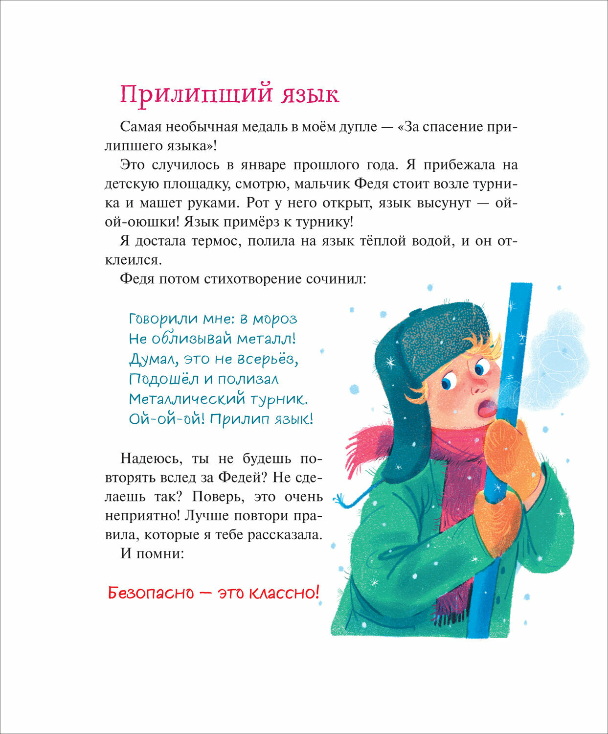 Что делать, если начался пожар? Как поступить, если незнакомец на улице предлагает конфету? Почему важно знать правила дорожного движения?В этой книжке вы найдете истории и советы отважной белки Ойки Спасайкиной. Она расскажет вашему малышу, как избежать неприятностей, где бы он ни находился: дома или на улице, в лесу или около стройки, на воде или у дороги. Учить правила безопасности вместе с Ойкой будет легко и интересно. И ваш малыш навсегда запомнит, что безопасно — это классно!