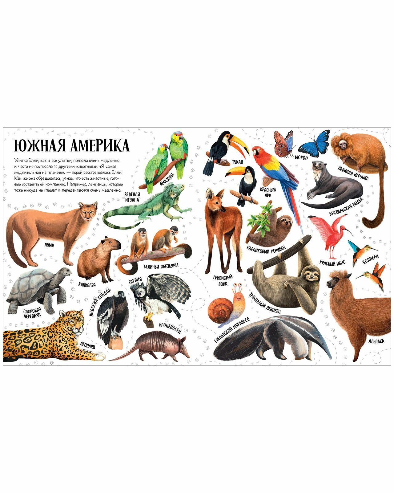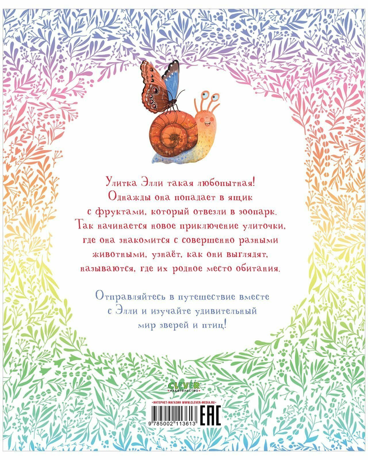Улитка Элли такая любопытная! Однажды она попадает в ящик с фруктами, который отвезли в зоопарк. Так начинается новое приключение улиточки, где она знакомится с совершенно разными животными, узнаёт, как они выглядят, называются, где их родное место обитания. Отправляйтесь в путешествие вместе с Элли и изучайте удивительный мир зверей и птиц!