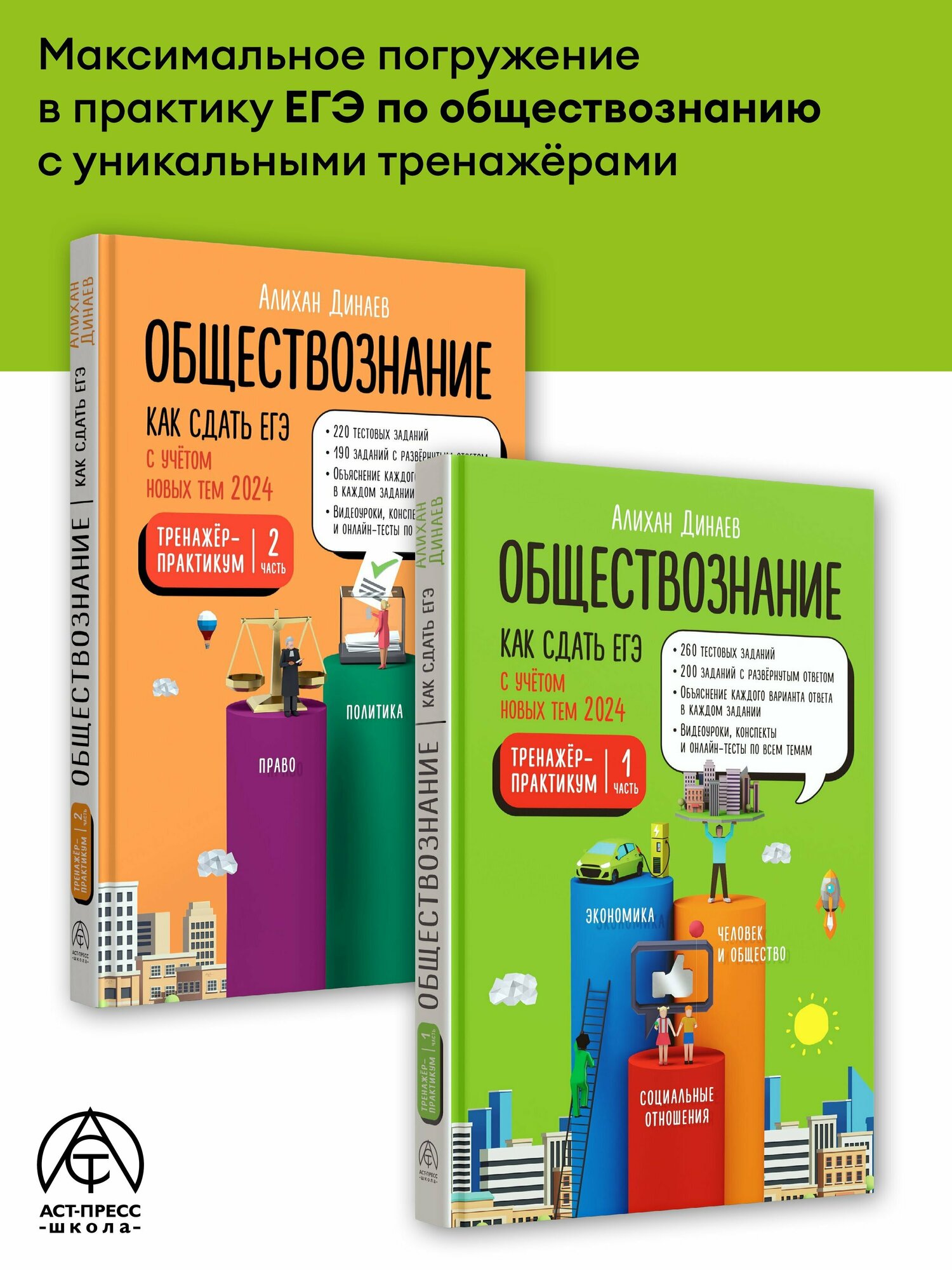 Обществознание. Как сдать ЕГЭ. Тренажер-практикум. Комплект из двух частей (Динаев Алихан Мавладиевич); ИЗДАТЕЛЬСТВО "АСТ", 2024