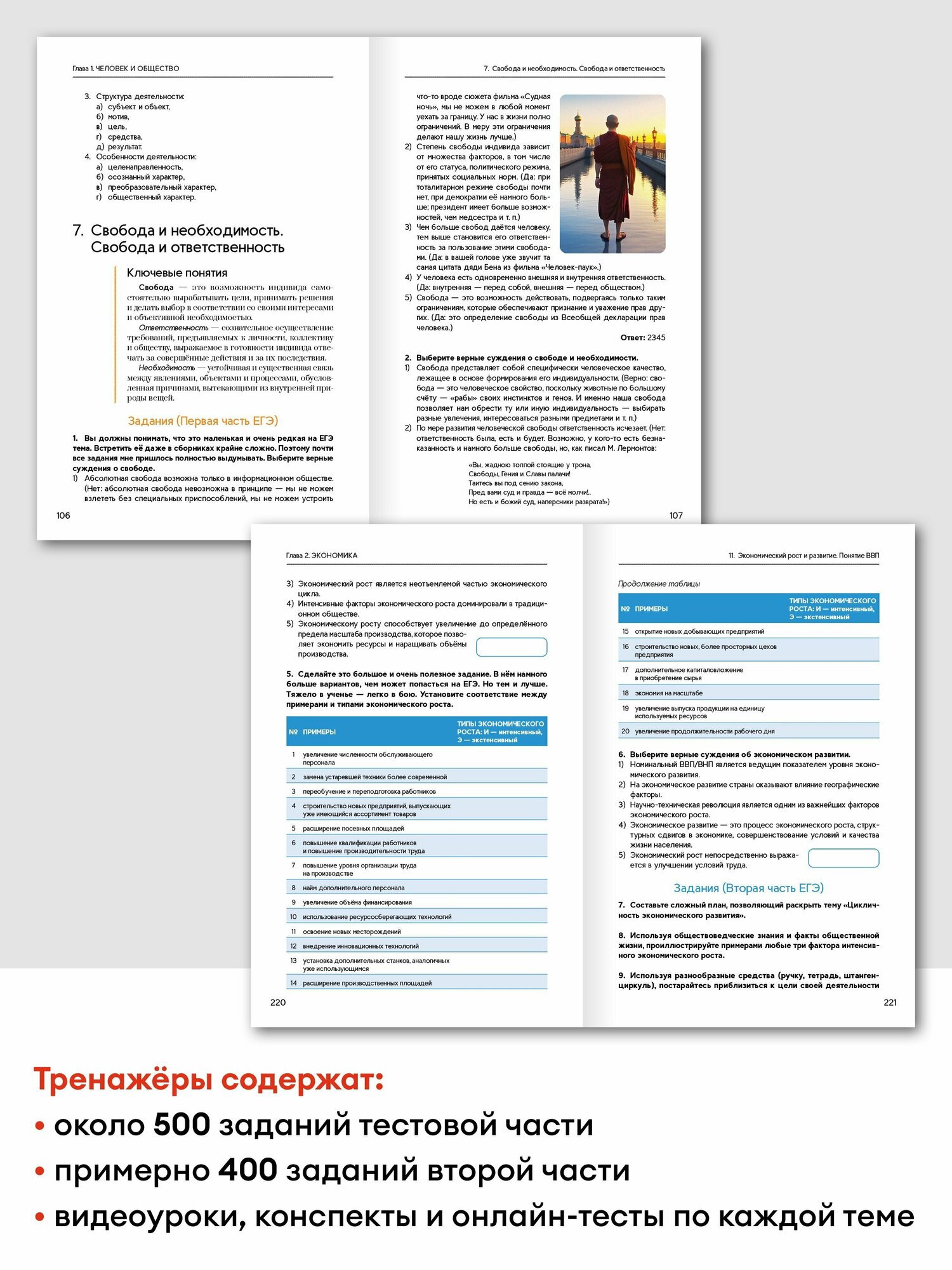 Первая часть тренажера-практикума включает в себя разделы «Человек и общество», «Экономика» и «Социальные отношения».
