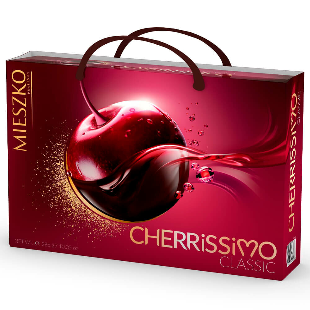 Конфеты Mieszko Cherrissimo эксклюзив сумка - вишня в алкоголе - это сочетание насыщенного вкуса шоколада с сочной вишней и вкусом ликера, обогащенного натуральным фруктовым соком. Безупречное дополнение к прекрасному вечеру и фантастический подарок для кого-то особенного вместе с конфетами. Конфеты Mieszko Cherrissimo эксклюзив вишня в алкоголе в сумке - шикарные конфеты для любимых!