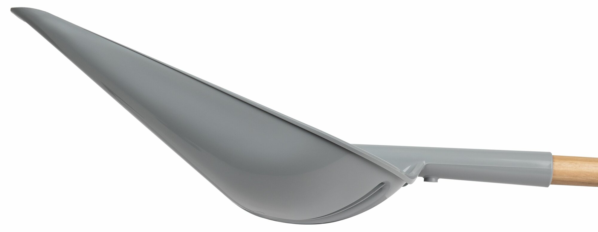 Лопата изготовлена из высокопрочного пластика. Легкий продукт, требующий от пользователя меньших физических усилий, что делает работу более приятной. Рукоятка этого инструмента длиной 79 см отличается высокой прочностью и изготовлена из древесины из возобновляемых источников. Ручка с лаковым покрытием для лучшего внешнего вида. Защитный слой прозрачного лака усиливает цвет, придает изделию блеск и гладкость. Имеет эргономичную пластиковую рукоятку.