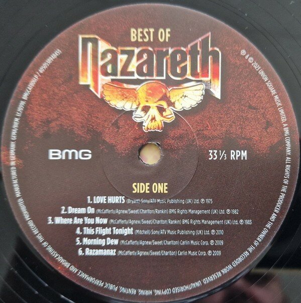 Nazareth – Best Of (Compilation, Stereo) LP "Best Of" - сборник хитов знаменитой шотландской рок-группы Nazareth от компании BMG. Не упустите свой шанс стать обладателем этой легендарной коллекции культовых композиций. Хватайте свой экземпляр прямо сейчас и позвольте музыке унести вас в дикое, незабываемое путешествие! Nazareth - культовая шотландская рок-группа, образованная в 1968 году. Они получили международное признание и добились успеха в 1970-х годах благодаря своему яркому хард-роковому звучанию, характерному вокалу и мощным концертным выступлениям. За годы существования группы ее состав претерпел несколько изменений, но основными участниками классического состава команды являются Дэн Маккаферти (вокал), Мэнни Чарлтон (гитара), Пит Агнью (бас) и Даррелл Свит (ударные). Музыка Nazareth известна своим блюзовым и тяжелым рок-звучанием, часто с запоминающимися гитарными рифами, уникальными мелодиями и грубым, жестким вокалом Дэна Маккаферти. Они добились успеха в чартах с такими песнями, как "Love Hurts", кавер-версия песни Everly Brothers, которая стала их самым большим хитом и классикой рока. Среди других популярных композиций - "Hair of the Dog", "Razamanaz" и "Broken Down Angel". На протяжении своей карьеры группа выпустила множество альбомов, в том числе такие известные релизы, как "Razamanaz" (1973), "Loud 'n' Proud" (1973), "Hair of the Dog" (1975) и "No Mean City" (1979). Влияние Nazareth на жанры рока и хард-рока очень велико, и они оставили неизгладимый след в музыкальной индустрии. Несмотря на смену состава и уход из жизни оригинальных участников, группа продолжает выступать и выпускать новую музыку, сохраняя свое наследие и радуя слушателей своим неповторимым звучанием. По состоянию на сентябрь 2021 года, Nazareth состоит из следующих участников: Пит Агнью: Пит Агнью - единственный оставшийся оригинальный участник Nazareth. Он играет на бас-гитаре и исполняет бэк-вокал. Агню был в группе с момента ее образования в 1968 году и известен своими солидными басовыми партиями и авторским вкладом в создание музыки. Ли Агнью: Ли Агнью, сын Пита Агнью, присоединился к Nazareth в качестве барабанщика в 1999 году. Он был частью группы более двух десятилетий и известен своим мощным стилем игры на барабанах и энергичным присутствием на сцене. Карл Сентанс: Карл Сентанс стал ведущим вокалистом Nazareth в 2015 году. До прихода в группу Сентанс работал со многими другими рок-группами, включая Geezer Butler Band, Persian Risk и Don Airey Band. Он привносит в выступления и записи Nazareth свой особый вокальный стиль. Джимми Муррисон: Джимми Муррисон присоединился к Nazareth в 1994 году в качестве ведущего гитариста. Благодаря своим разносторонним гитарным навыкам и блюзовому стилю игры, Муррисон стал неотъемлемой частью студийного звучания и живых выступлений группы. Вместе нынешний состав Nazareth продолжает гастролировать и.