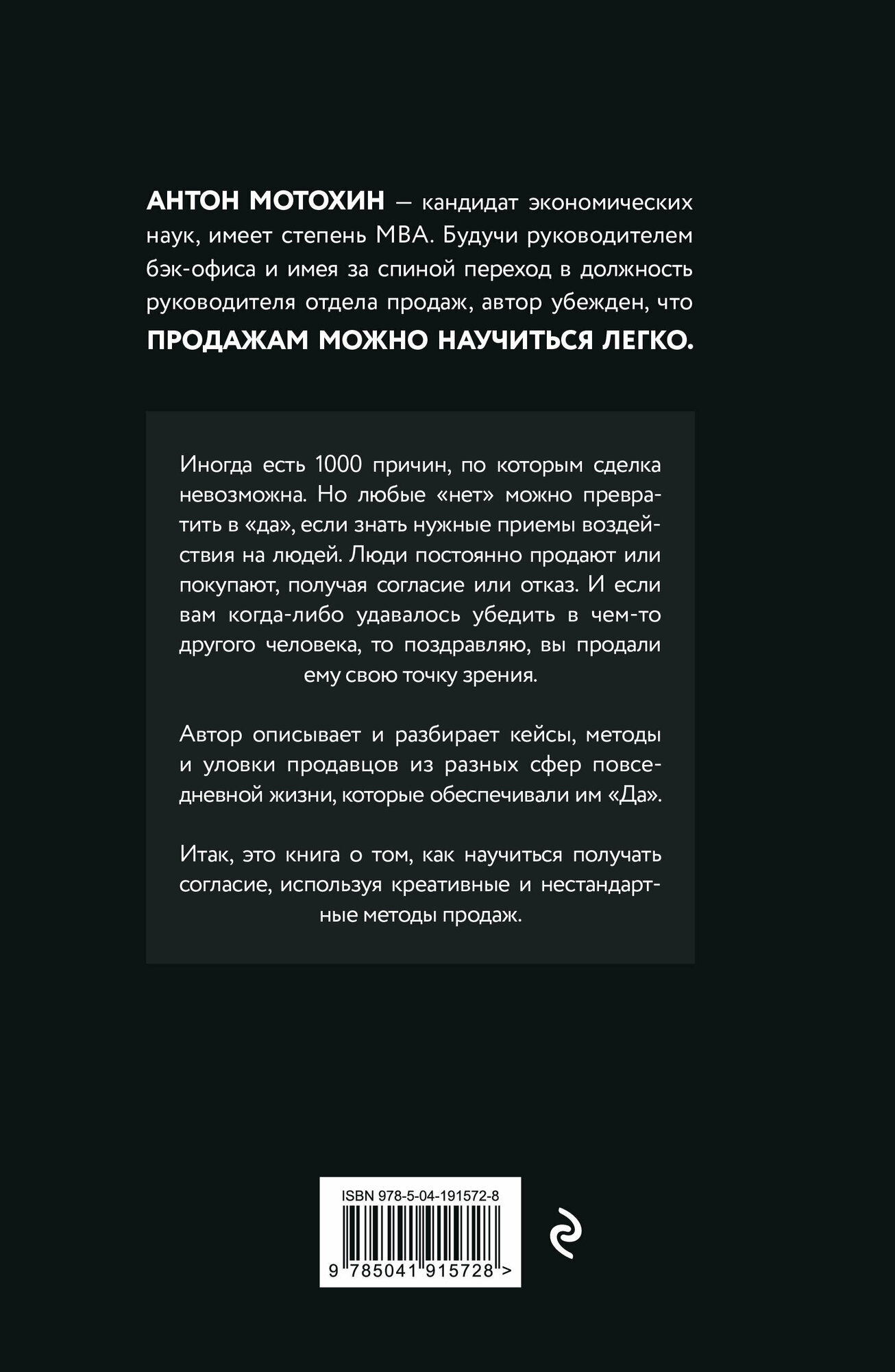Итак, это книга о том, как научиться получать согласие, используя креативные и нестандартные методы продаж.