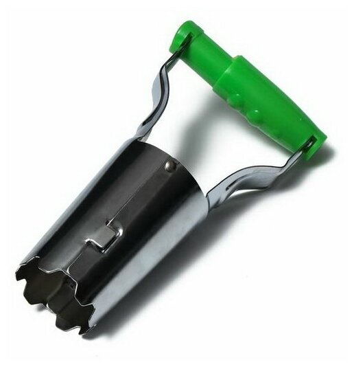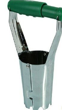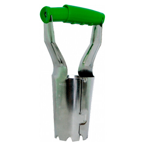 Сажалка для луковичных позволяет легко и быстро посадить единичные луковички. Практичный конус позволяет определить правильную глубину лунки. Также с помощью этого инструмента можно создавать борозду. Отличается сажалка следующими преимуществами: простота и удобство в работе; автоматический выпуск на рукоятке; платформа легко открывается; прочный и надежный материал; высокое качество исполнения. Короткая ручка позволяет проделывать лунки между кустарниками и там, где невозможно перекопать почву. Достаточно загрузить сажалку в грунт, покрутить и вынуть. Положить луковицы растений в лунку и высыпать почву из емкости, нажав на рычаг.