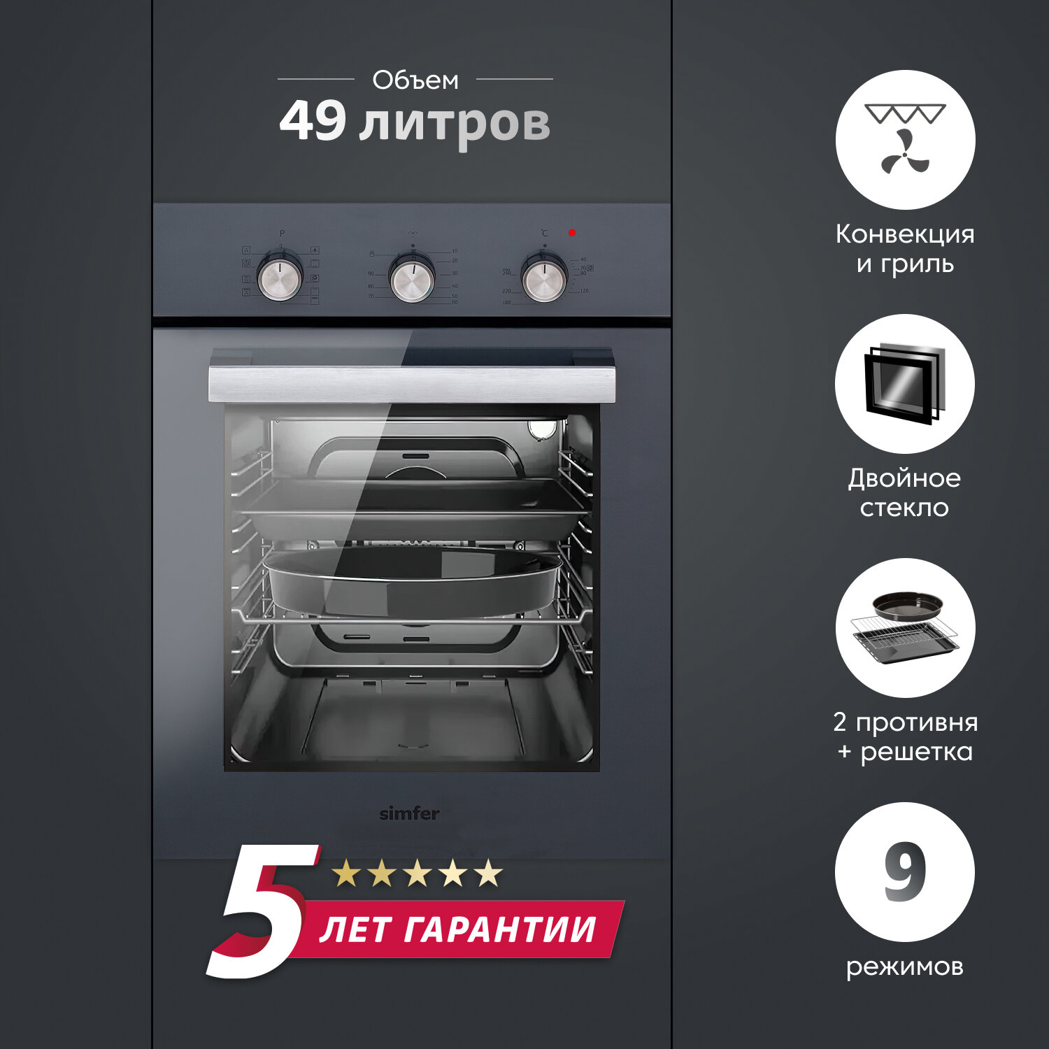 Электрический духовой шкаф Simfer B4EG19070 (9 режимов работы конвекция гриль)