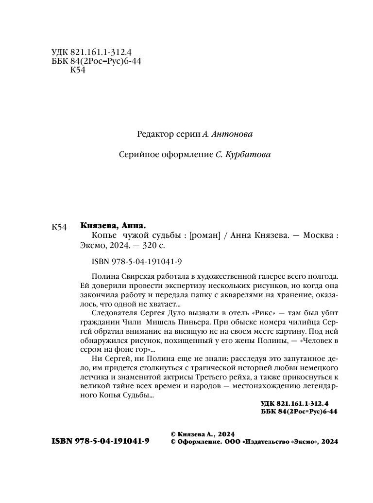 Книга: Копье чужой судьбы (Анна Князева); Эксмо, Редакция 1, 2023