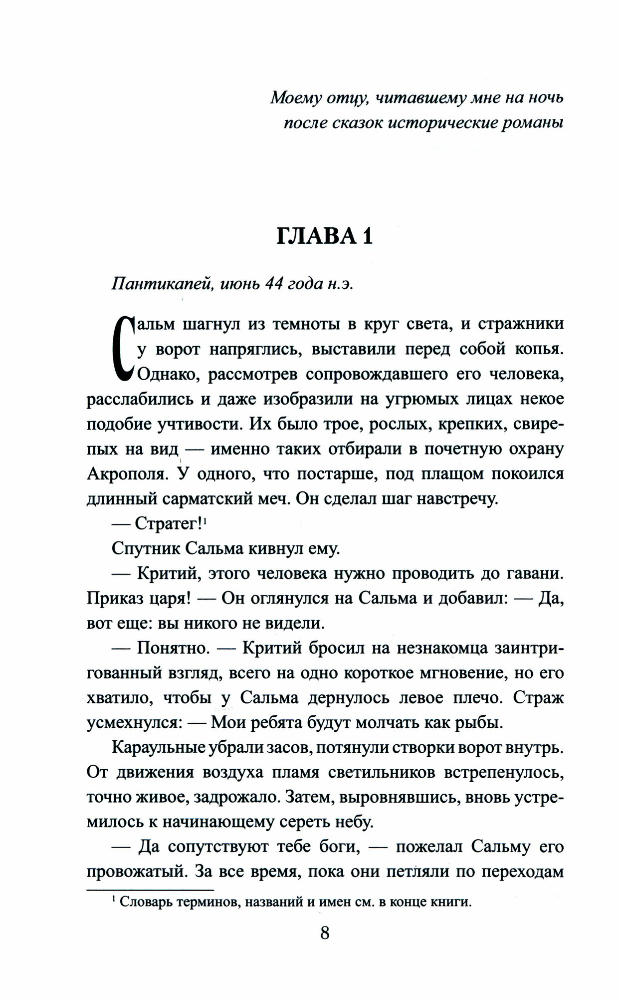 Римская империя, середина I века нашей эры. После побед в Британии и провозглашения ее новой провинцией император Клавдий переносит свое внимание на восток, к берегам Понта Эвксинского, где уже зреет новая война. Не так давно занявший трон Боспора Митридат VIII, потомок грозного понтийского царя Митридата VI Евпатора, вынашивает планы по выходу из-под опеки Рима и восстановлению былого могущества своего царства. Его намерения грозят Империи потерей контроля над всей Таврикой, и единственный способ не допустить этого — замена неуправляемого Митридата на лояльного Риму правителя. И такой кандидат есть. Это младший брат мятежного царя — Котис. Но для выполнения этой задачи Клавдию необходимы преданные и отважные люди, такие как Гай Туллий Лукан и его товарищи по оружию, солдаты прославленного Восьмого легиона Августа. Только они своими остро отточенными мечами могут восстановить в Боспорском царстве удобный для Империи порядок… Кровавые сражения на суше и на море, отвага, измена и любовь — все это в романе о малоизвестной войне между Римом и Боспором «На острие меча».