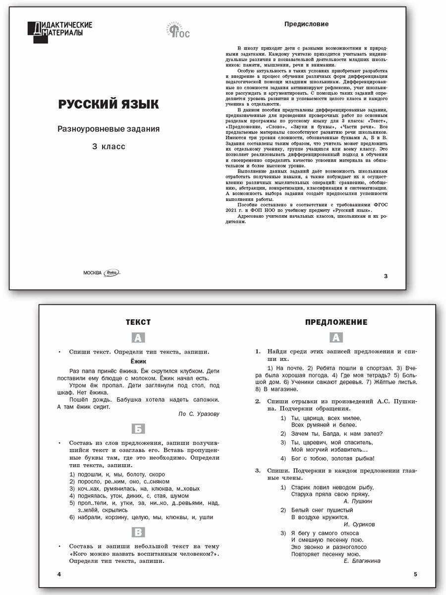 Пособие представляет собой универсальный сборник разноуровневых заданий по русскому языку для 3 класса. Задания разделены на три уровня сложности, составлены в соответствии с Федеральным государственным образовательным стандартом начального общего образования 2021 г. Может использоваться при обучении по любым учебникам.