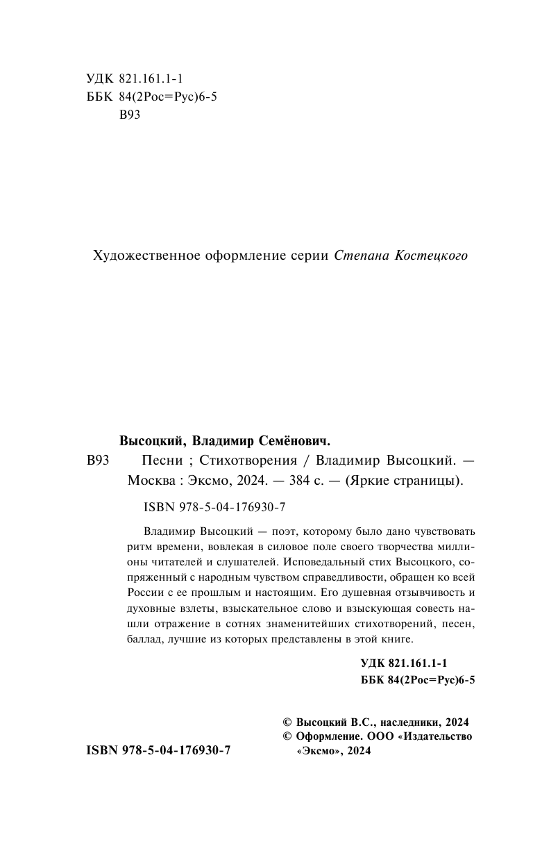 Книга: Песни. Стихотворения (Владимир Высоцкий); Эксмо, Редакция 1, 2024