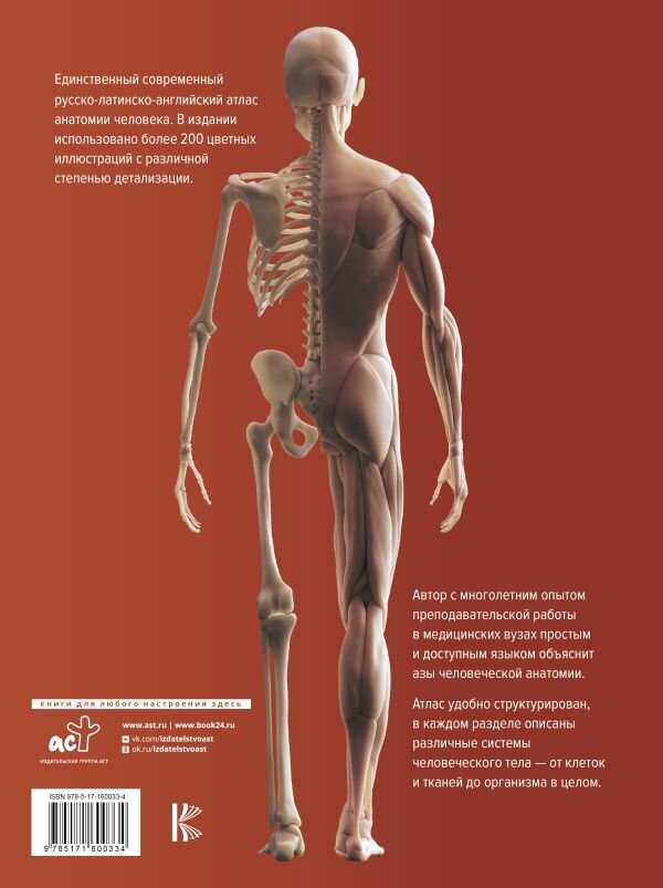 Единственный современный русско-латинско-английский атлас анатомии человека. В издании использовано более 200 цветных иллюстраций с различной степенью детализации.Автор с многолетним опытом преподавательской работы в медицинских вузах простым и доступным языком объяснит азы человеческой анатомии.Атлас удобно структурирован, в каждом разделе описаны различные системы человеческого тела — от клеток и тканей до организма в целом.