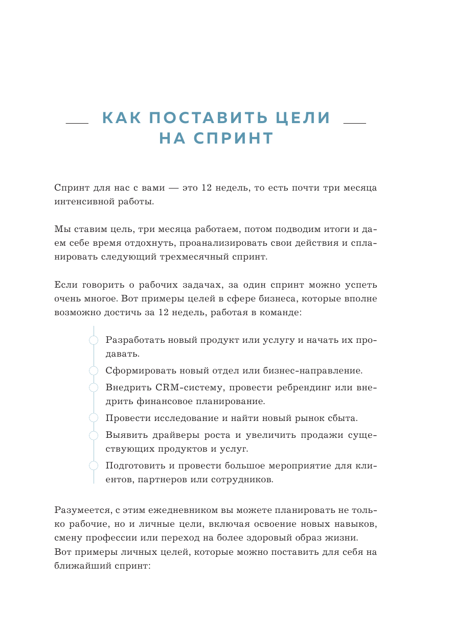 Спринт-планнер "Новая высота" на 12 недель по авторской системе достижения целей без выгорания.Вот что вы найдете внутри:- фокусировка на целях;- мониторинг прогресса;- итоги недели;- вопросы-ускорители;- вопросы-открытия;- заметки на день;- яркие выходные;- итоги недели, месяца и спринта.В этот ежедневник автор постарался включить не только инструменты, помогающие держать фокус и не сбиться с маршрута, но и вопросы, ответив на которые, вы будете лучше понимать себя и увидите более красивый и короткий путь к вашим целям.Сергей Кофанов - чемпион России по альпинизму, ИТ-предприниматель и мотивационный спикер. Автор книги "У каждого свой Эверест".Победитель премии "Деловая книга года в России 2022" в номинации "Лучшая книга в помощь бизнесу".