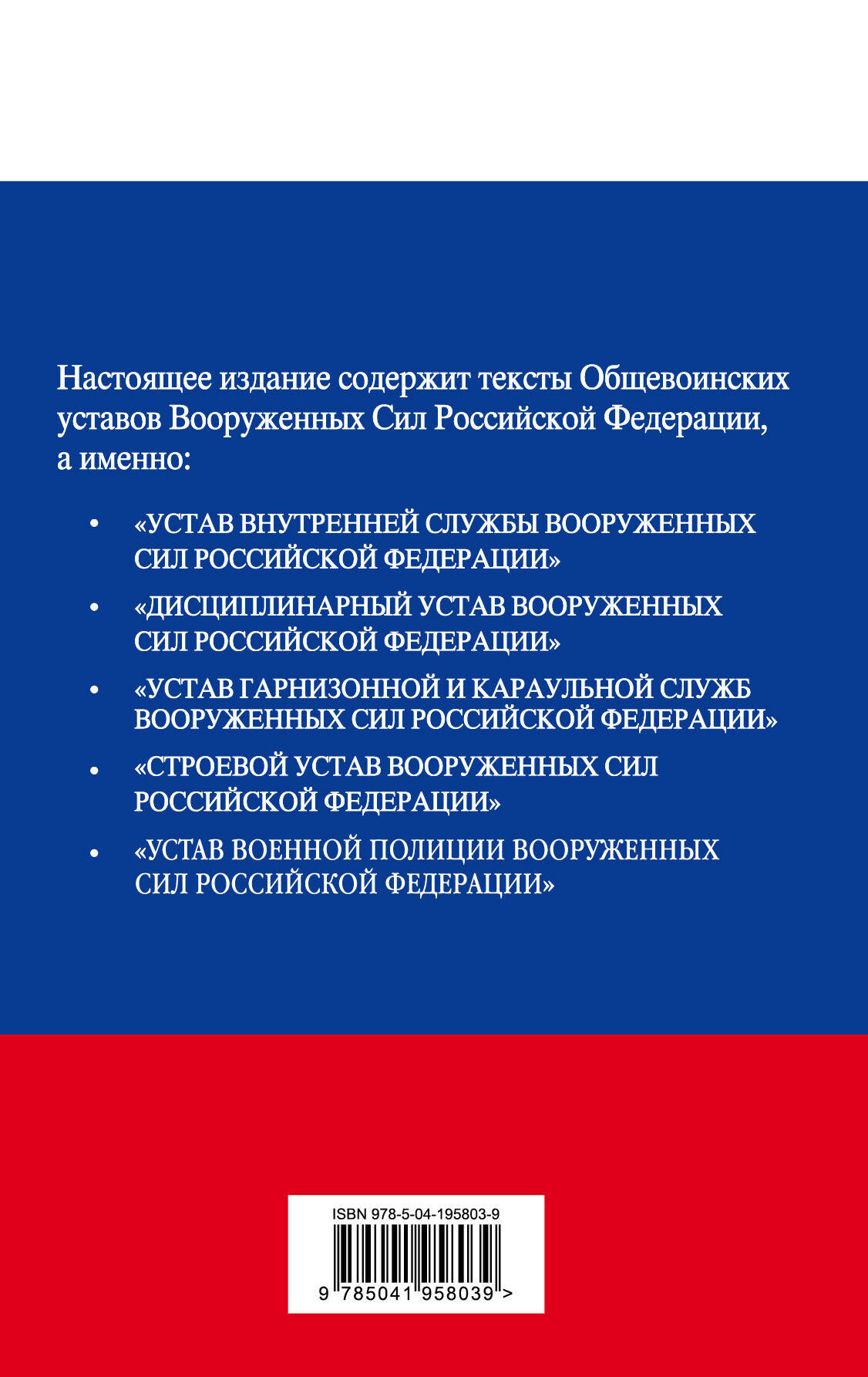 Настоящее издание содержит тексты Общевоинских уставов Вооруженных Сил Российской Федерации и Устав Военной полиции Вооруженных Сил Российской Федерации.