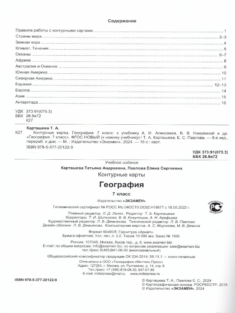 Контурные карты. География. 7 класс: к учебнику А.И. Алексеева В.В. Николиной и др. "География. 7 класс". ФГОС НОВЫЙ (к новому учебнику) (Татьяна Андреевна Карташева, Елена Сергеевна Павлова); Экзамен, 2025
