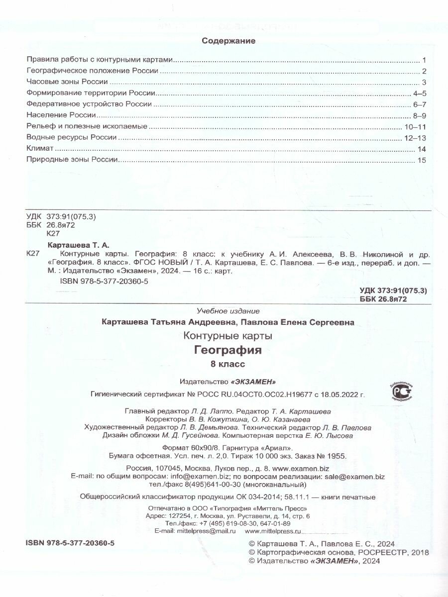 Контурные карты. География: 8 класс: к учебнику А.И. Алексеева В.В. Николиной и др. "География. 8 класс". ФГОС НОВЫЙ (Карташева Татьяна Андреевна, Павлова Елена Сергеевна); Экзамен, 2022