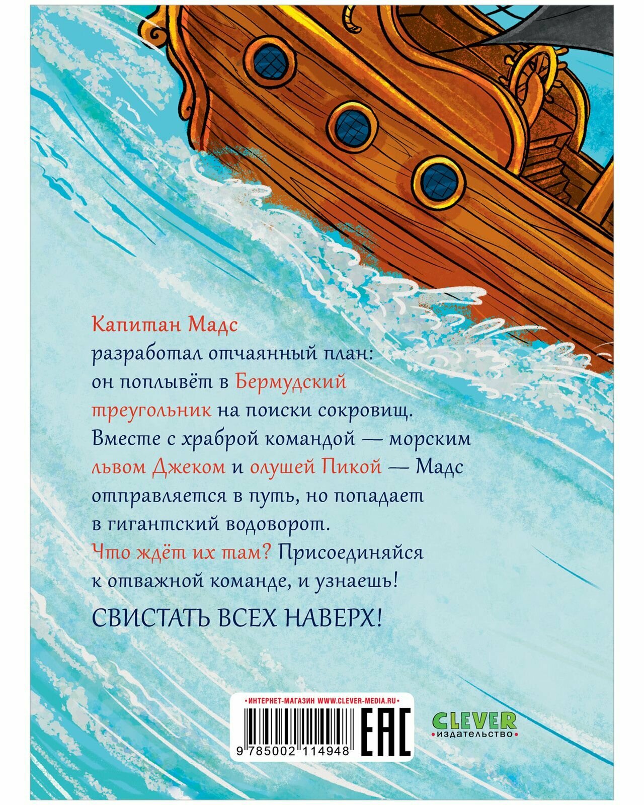 Капитан Мадс разработал отчаянный план: он поплывёт в Бермудский треугольник на поиски сокровищ.Вместе с храброй командой - морским львом Джеком и олушей Пикой - Мадс отправляется в путь, но попадает в гигантский водоворот. Что ждёт их там? Присоединяйся к отважной команде, и узнаешь! Свистать всех наверх!