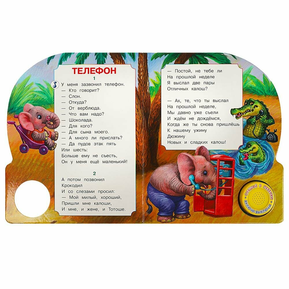 Музыкальная книга. 1 звуковая кнопка, 3 песенки. К. И. Чуковский. Телефон, ТМ «УМка»: